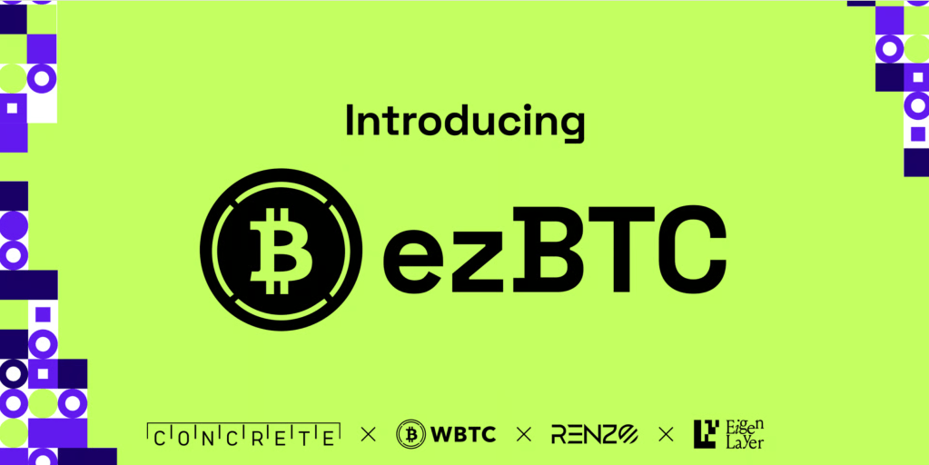 Renzo, in partnership with Concrete, is thrilled to announce ezBTC – its first ever Bitcoin-backed liquid restaking asset on EigenCloud. Fully backed by WBTC, ezBTC will generate yield by securing AVSs on EigenLayer.